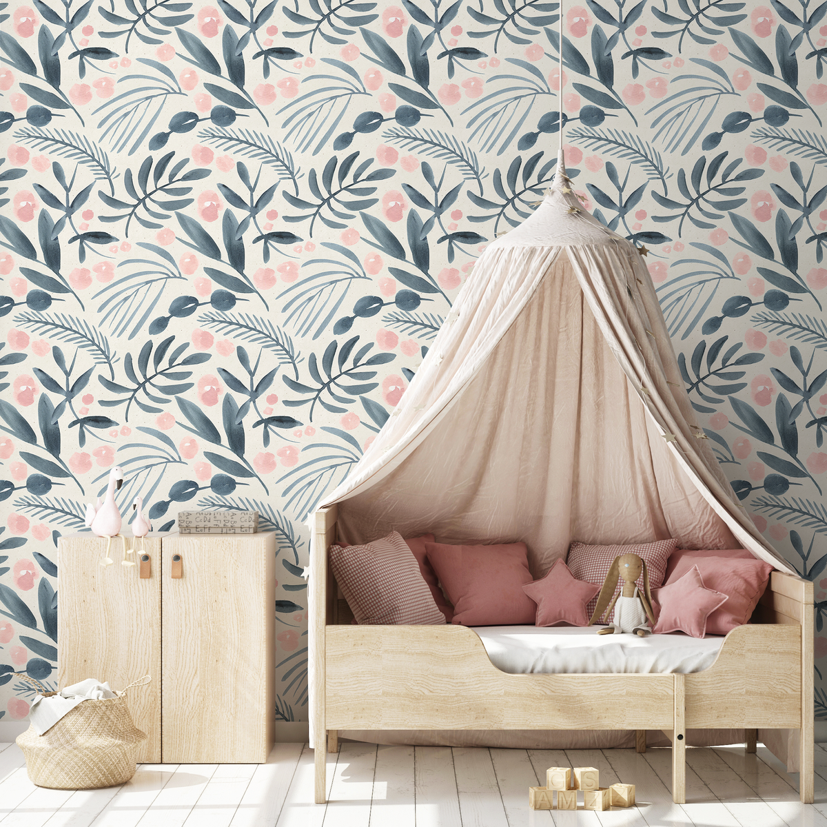 Papier peint amovible, papier peint scandinave, papier peint temporaire, papier peint à fleurs contemporain, papier peint autocollant - A748