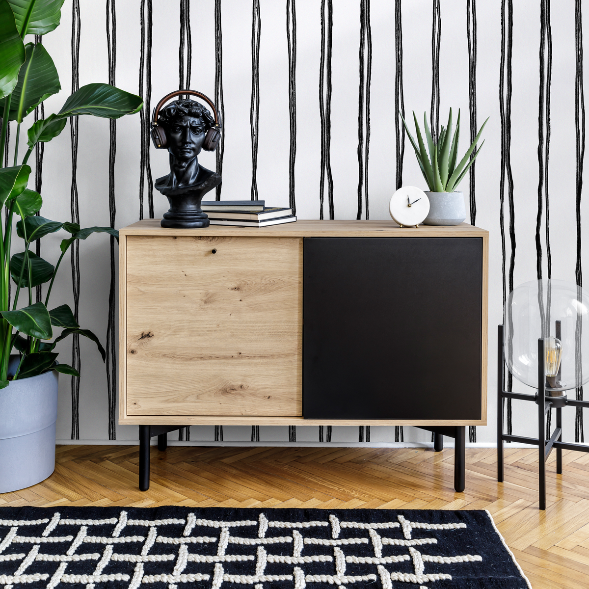 Papier peint à rayures bohème noir et blanc / Papier peint autocollant amovible Décoration d'intérieur Art mural Décoration murale Décoration de chambre - C898