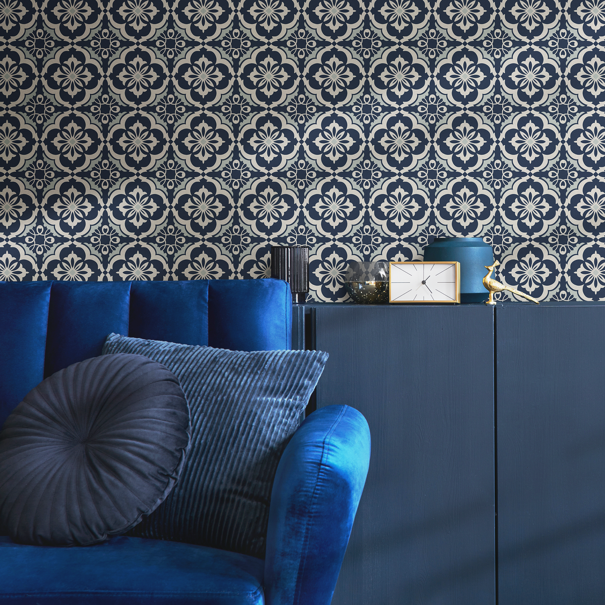 Papier peint amovible, papier peint adhésif, papier peint mural - Papier peint à carreaux azulejos portugais - C163