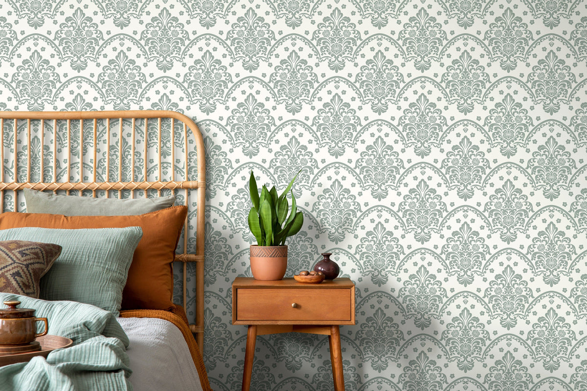 Papier peint vintage vert clair / Papier peint autocollant amovible Décoration d'intérieur Art mural Décoration murale Décoration de chambre - D196