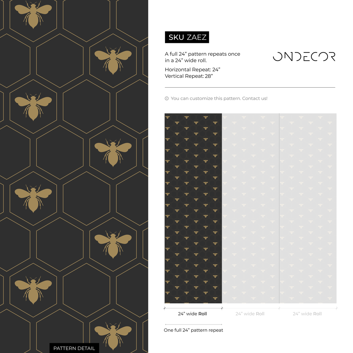 Geometric Wallpaper with a Honeycomb and Bee Motif in Gold and Black - ZAEZ