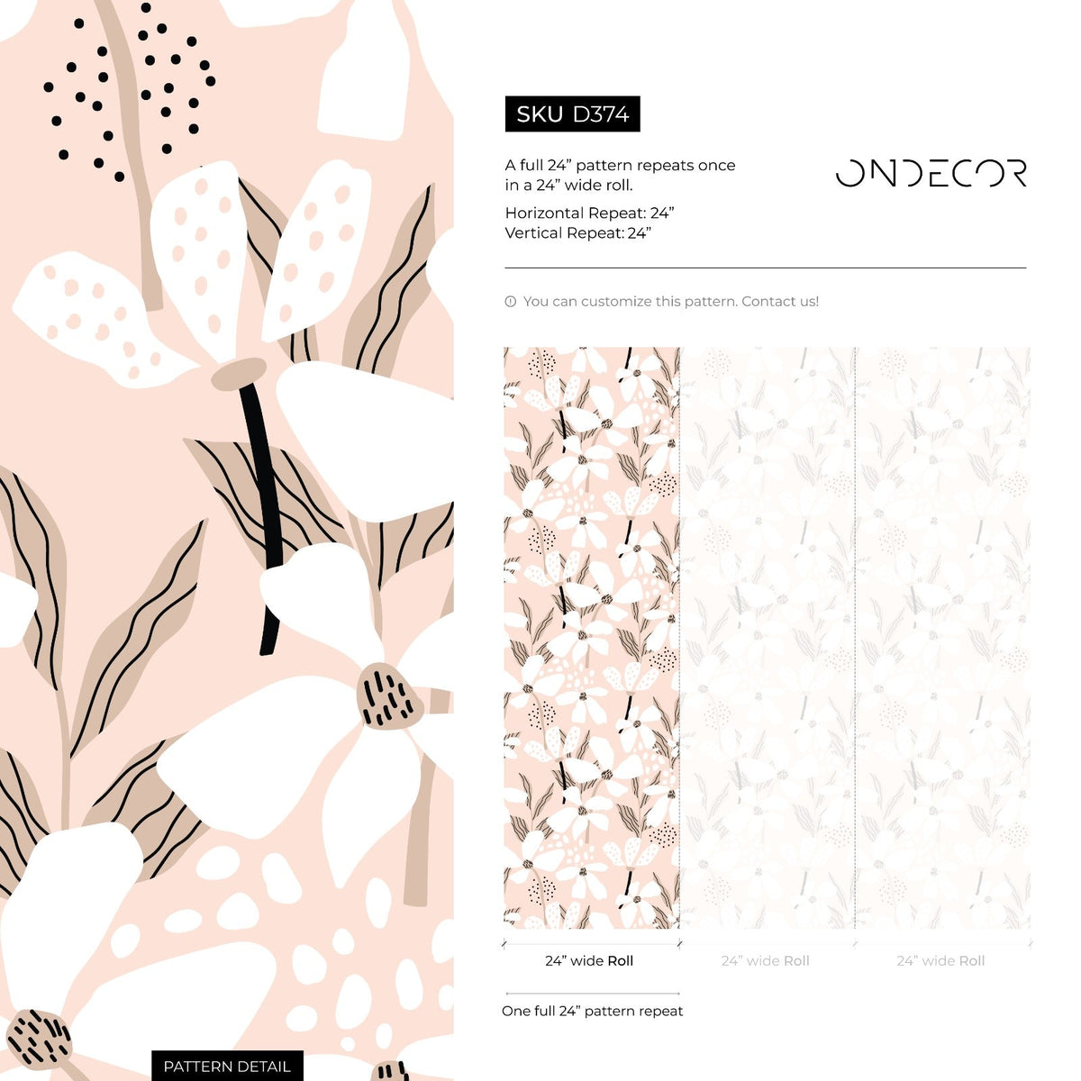 Abstract Floral Wallpaper with Stylized Blooms in Pink and Black - D374