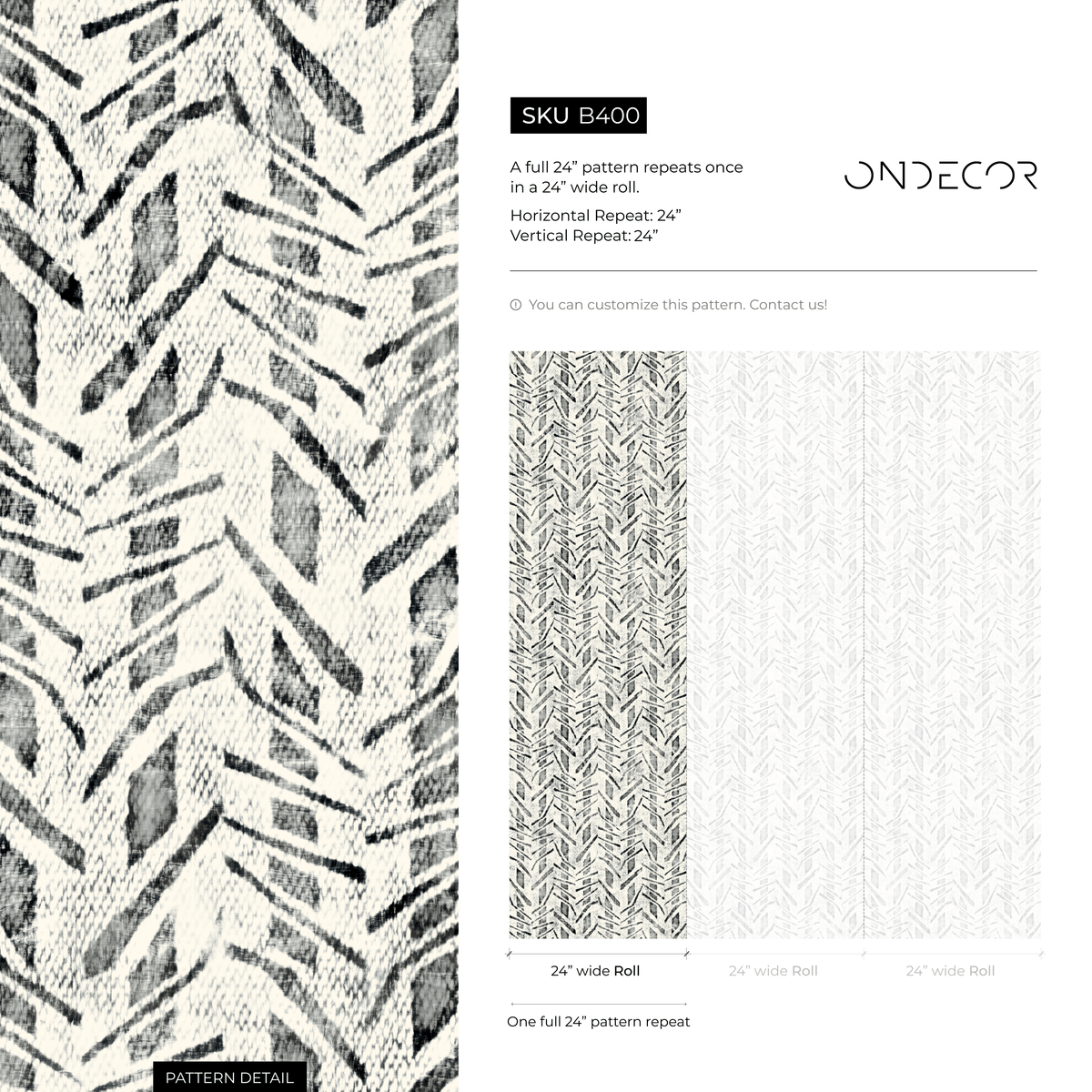 Abstract Wallpaper with a Block Print Chevron Motif in Black and Off-White - B400
