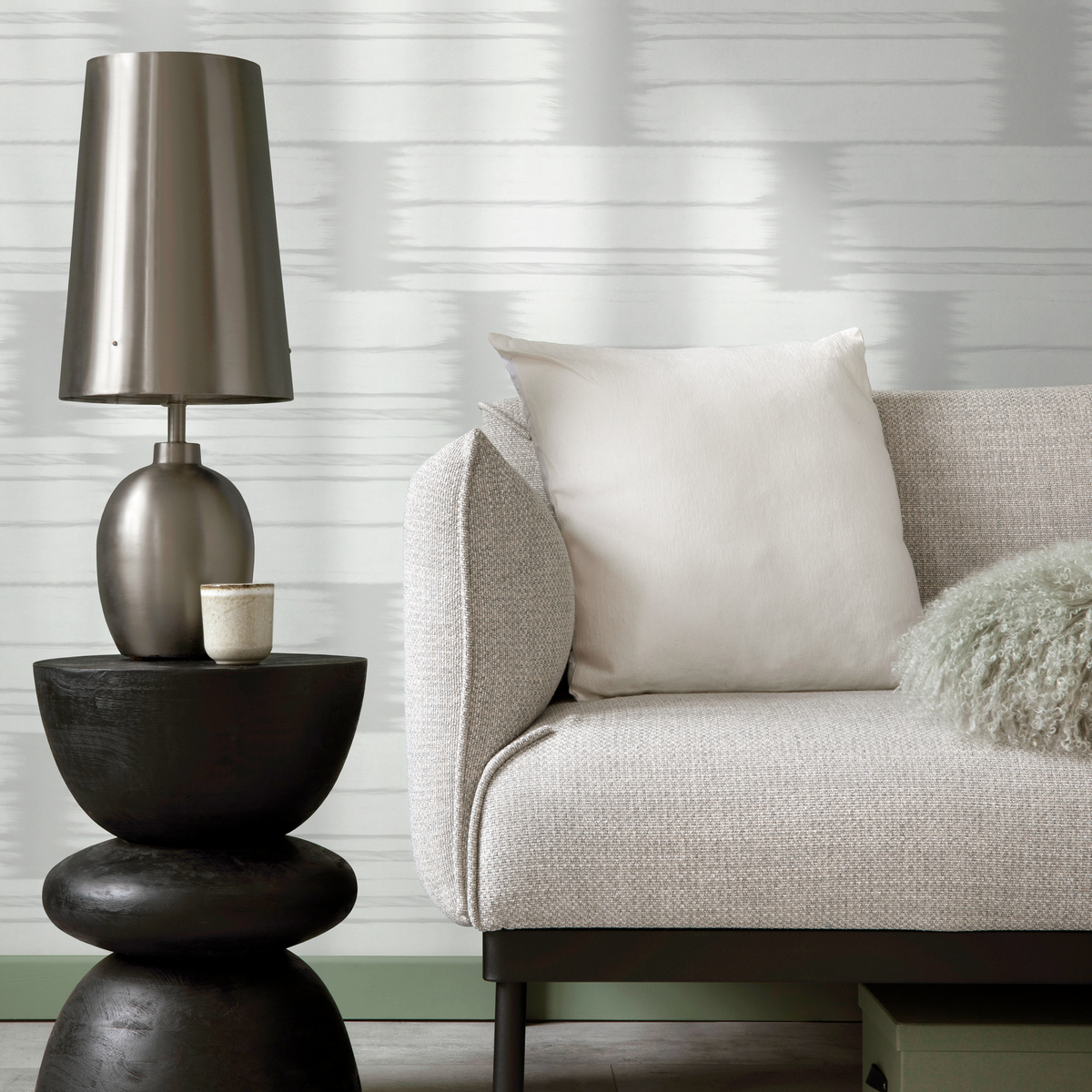 Abstract Wallpaper with Horizontal Brush Strokes in Light Gray - C685