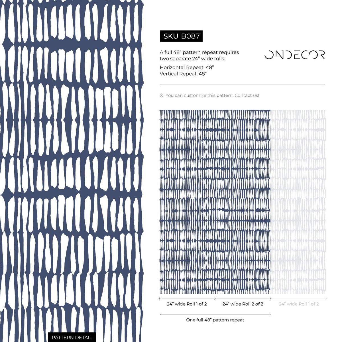 Introduce a touch of modern sophistication with our Abstract Wallpaper, featuring a captivating pattern of irregular vertical lines in a classic navy blue and white palette. This design brings dynamic yet balanced energy to any space, making it a perfect choice for creating a striking accent wall or transforming an entire room. The organic, hand-drawn quality of the lines adds a layer of artistic texture, elevating your interior design with a unique and contemporary feel.