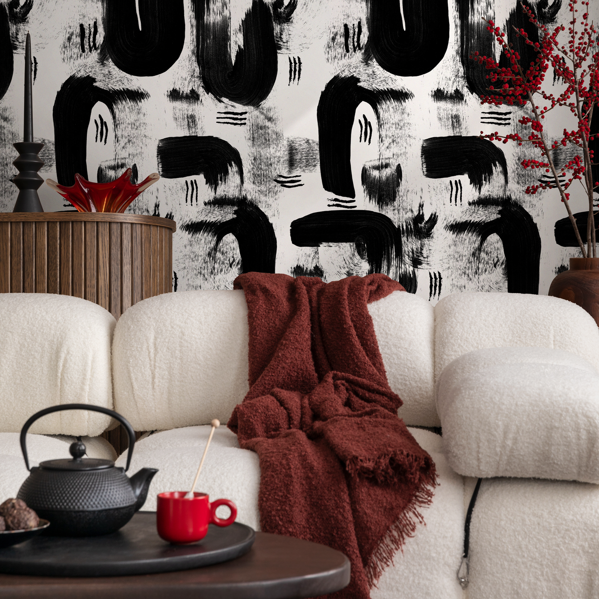 Elevate your interior design with our striking Abstract Wallpaper, featuring a bold composition of painterly brushstrokes in classic black and white. This captivating wall art brings a dynamic and artistic touch to any space, creating a sophisticated statement piece that transforms your walls from bland to brilliant. The expressive, free-form strokes offer a sense of movement and modern elegance, perfect for anyone looking to infuse their home decor with a contemporary, high-contrast aesthetic.