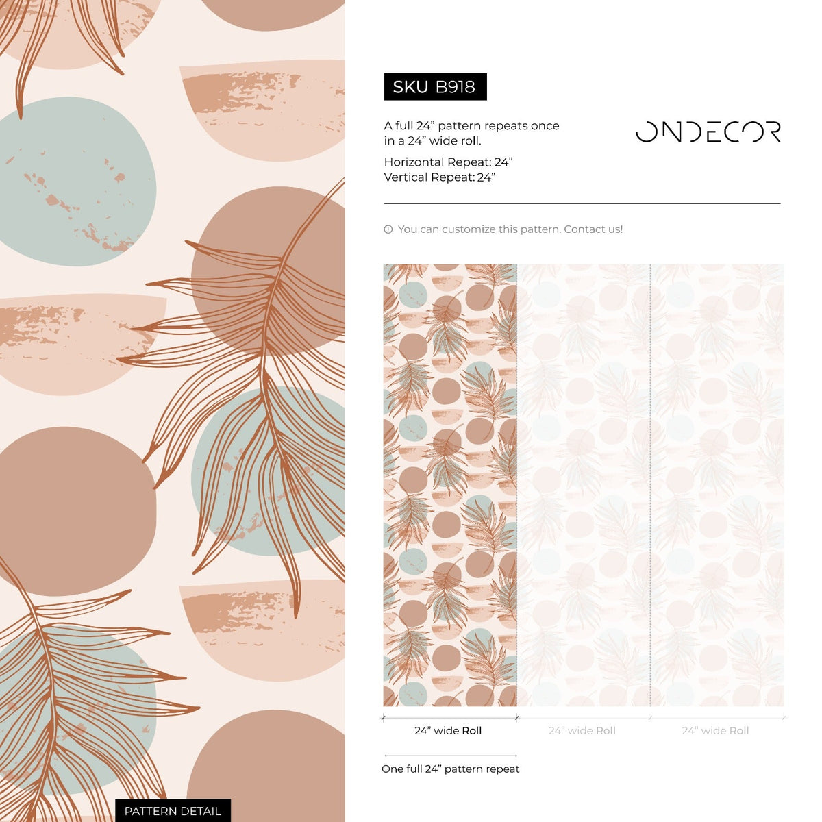 Introduce a touch of modern nature to your home with this Abstract Wallpaper, artfully combining botanical palm fronds and geometric circles. The sophisticated palette of terracotta and blue on a soft neutral background creates a warm, contemporary feel, perfect for a chic interior design update. This peel and stick wallpaper is an ideal choice for creating a stunning accent wall or transforming an entire room with its unique, artistic flair. The blend of natural and abstract elements makes this wall art a versatile addition to any home decor scheme.