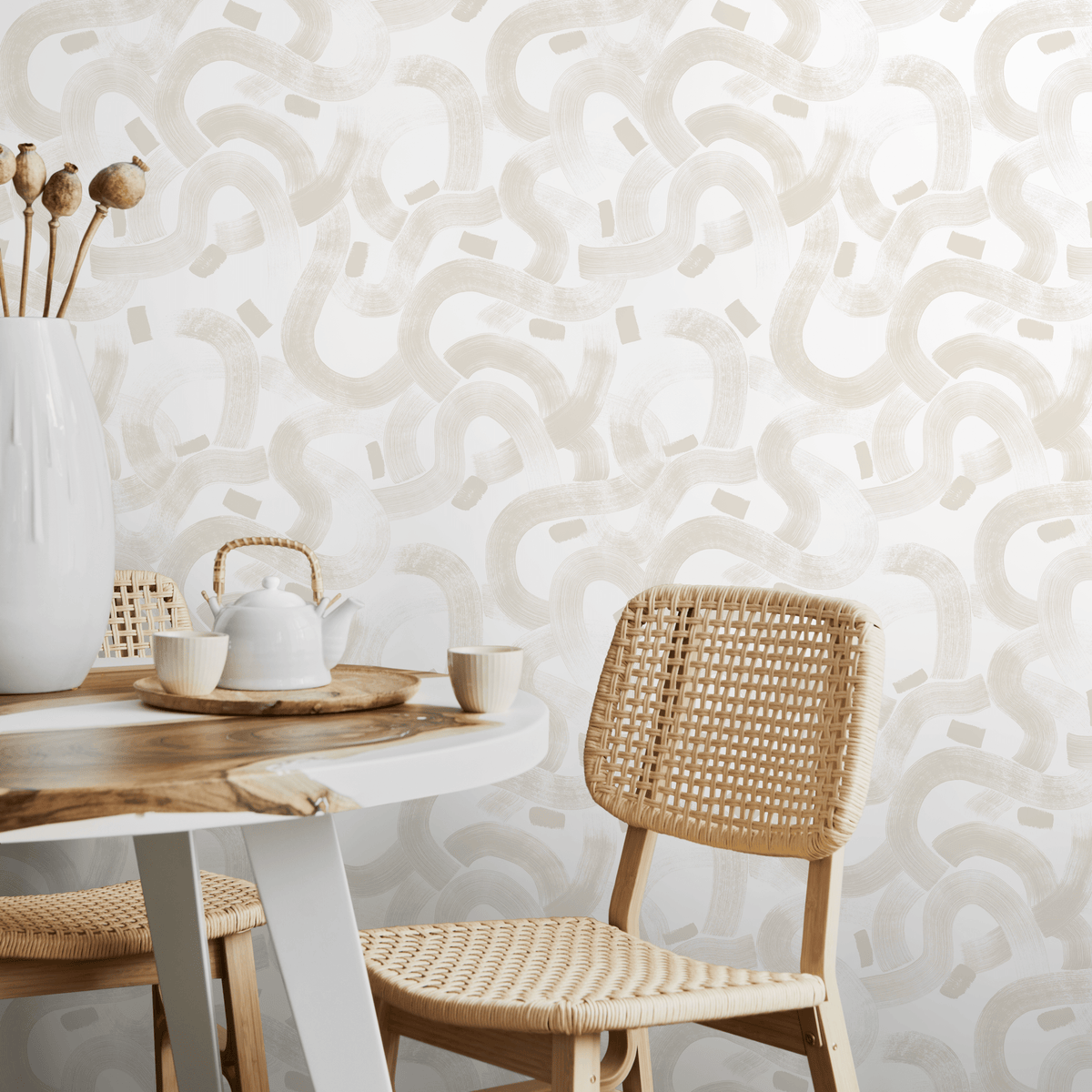Introduce a touch of serene artistry to your space with this Abstract Wallpaper, featuring soft, wavy brushstroke lines. The elegant design, rendered in a calming palette of beige and white, brings a sophisticated and modern feel to any interior. Perfect for creating a subtle yet impactful feature wall, this wall art enhances your home decor with its minimalist, hand-painted aesthetic, turning any plain wall into a canvas of contemporary style.