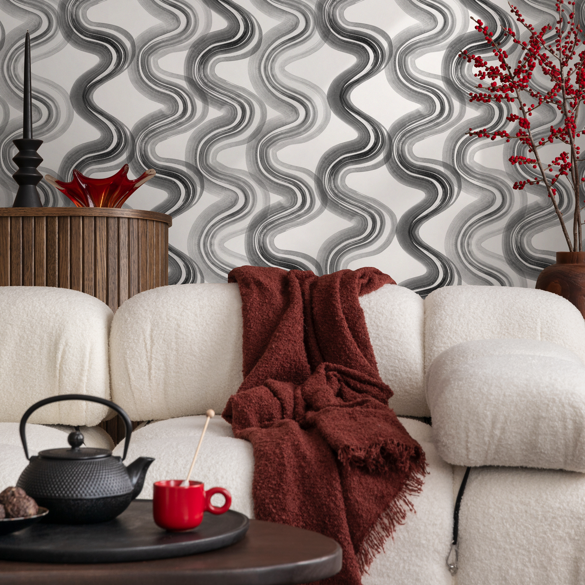 Introduce a dynamic and sophisticated touch to your space with this Abstract Wallpaper, featuring a captivating design of wavy ink lines. The fluid, artistic brushstrokes in a classic palette of black, white, and gray create a bold yet elegant statement, perfect for modern and contemporary home decor. This versatile wall art effortlessly enhances any room, serving as a stunning focal point or a chic backdrop that complements a wide range of interior design styles.