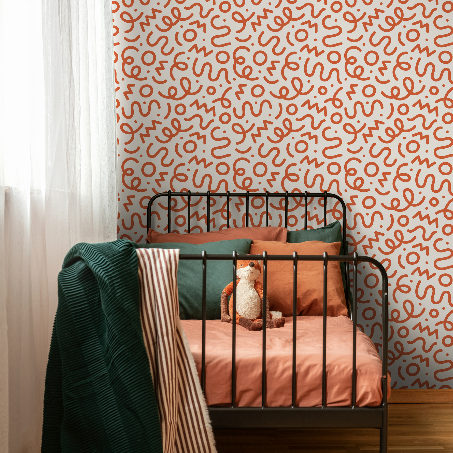 Introduce a burst of creative energy into your home with this Red Abstract Wallpaper. Characterized by its playful, hand-drawn squiggles, this design brings a dynamic and modern feel to any interior. This abstract wallpaper is perfect for creating an eye-catching accent wall or for decorating an entire room with a unique artistic flair, instantly elevating your home decor.