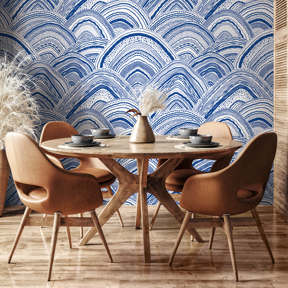 Introduce a bold, artistic touch to your space with this Abstract Wallpaper, featuring a captivating pattern of hand-drawn waves. The striking blue design on a clean background creates a dynamic and modern aesthetic, perfect for making a statement. This blue abstract wallpaper serves as stunning wall art, instantly elevating your interior design and transforming any room from ordinary to extraordinary. It’s an ideal choice for creating a feature wall that captures attention and inspires creativity.