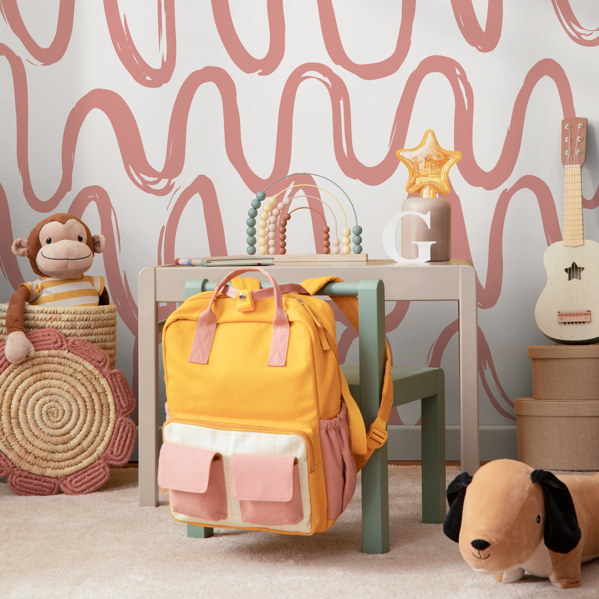 Transform your room with our stunning Abstract Wallpaper, featuring a playful and modern pattern of wavy brushstroke lines in a soft pink. This unique wall art is perfect for creating a cheerful and contemporary atmosphere in any space. The gentle, flowing design adds a touch of artistic flair, making it an ideal choice for a statement wall or a full room refresh.