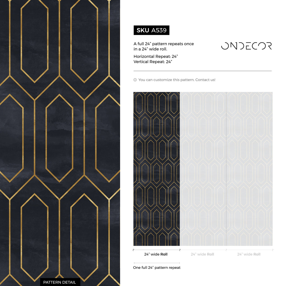 Art Deco Wallpaper with a Geometric Honeycomb Motif in Black and Gold - A539