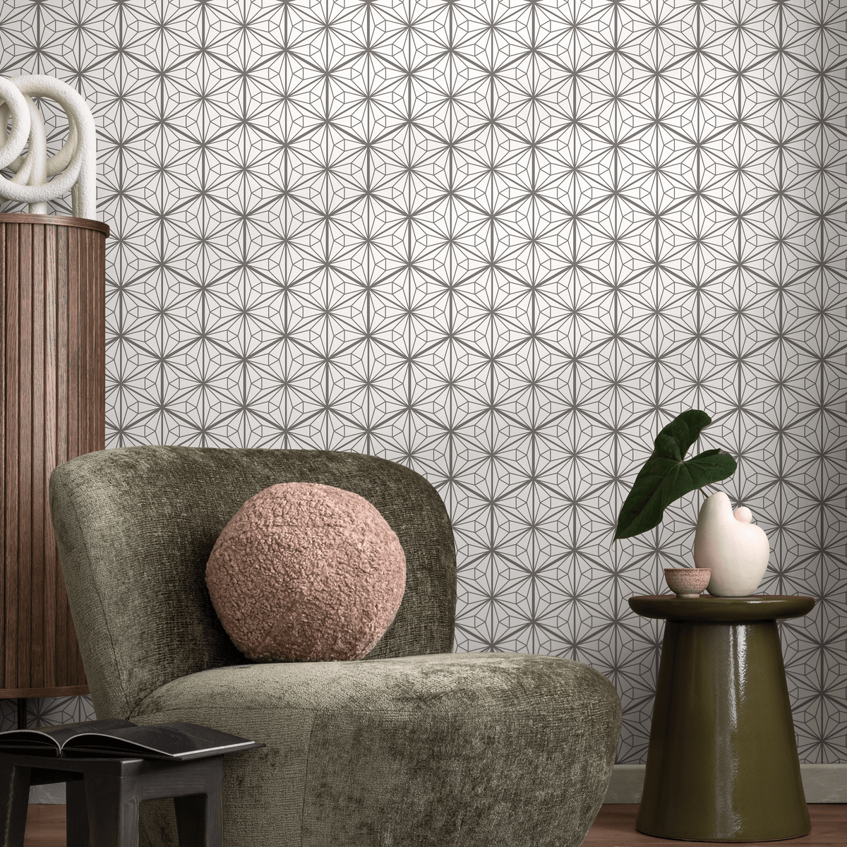 Introduce a touch of timeless elegance with our Art Deco Wallpaper, featuring a sophisticated geometric starburst motif in a classic grey. This minimalist wallpaper is perfect for creating a statement wall that feels both modern and refined. Its intricate yet clean lines bring a sense of order and artistic flair to any room, making it an ideal choice for contemporary home decor.