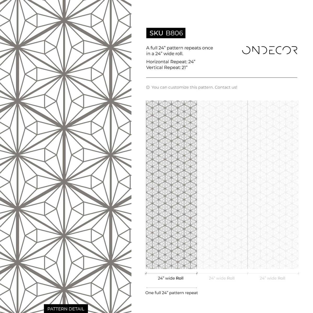 Art Deco Wallpaper with a Geometric Starburst Motif in Grey - B806
