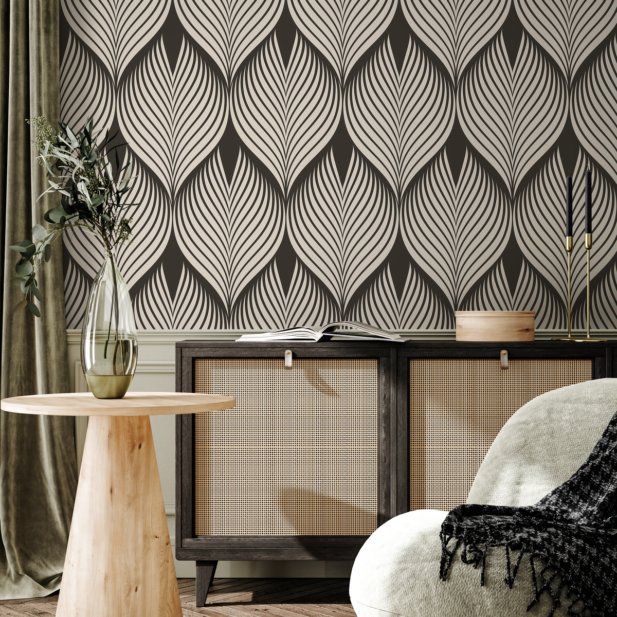 This versatile peel and stick wallpaper is the ideal solution for a quick and impactful home decor update. Whether you're creating a dramatic accent wall in your dining room or enveloping your bedroom in chic style, our removable wallpaper makes application a breeze. As a high-impact piece of wall art, this Art Deco wallpaper for home decor seamlessly integrates into your design vision, offering a professional finish without the commitment of traditional paste.