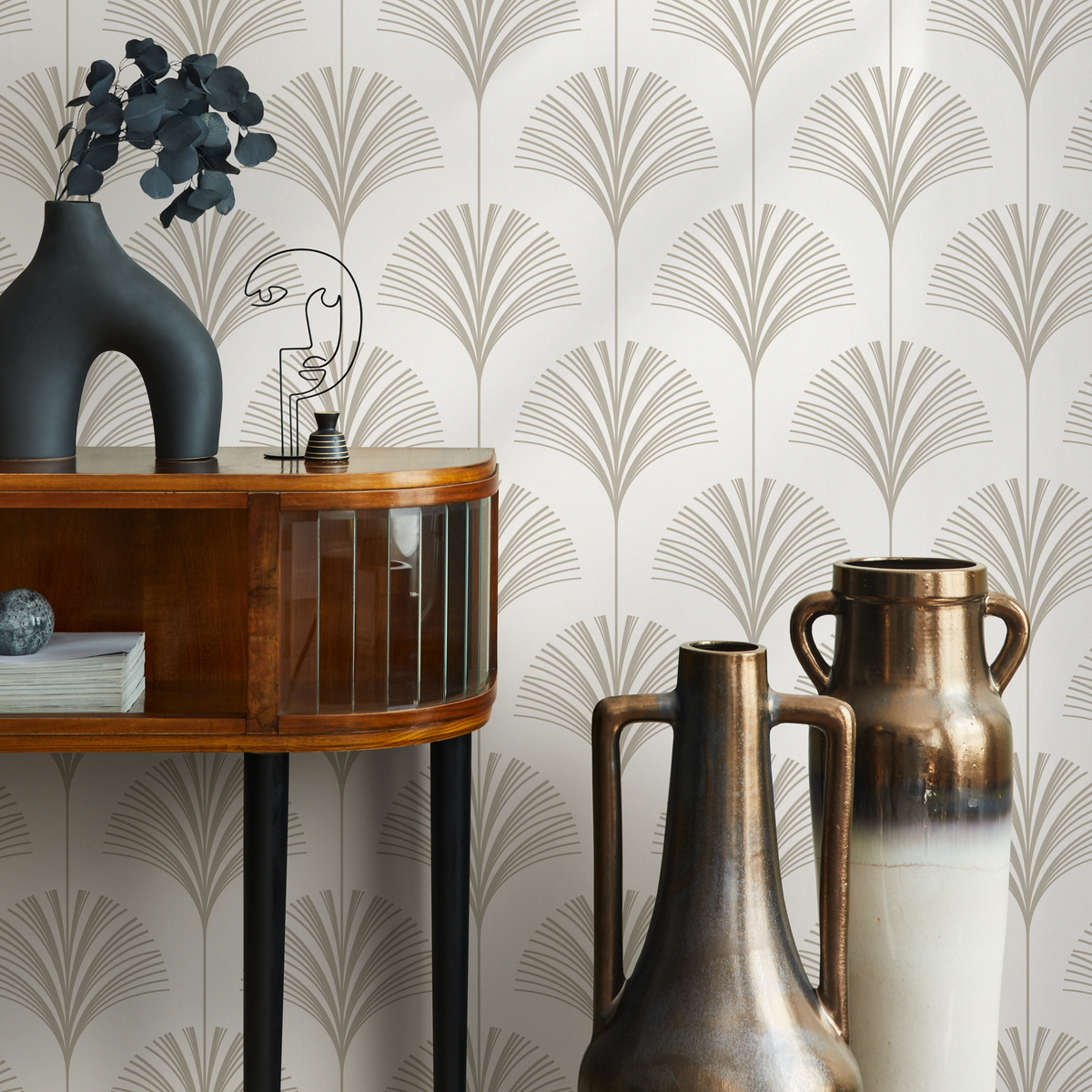 Art Deco Wallpaper with an Elegant Fan Motif in Gray - C218