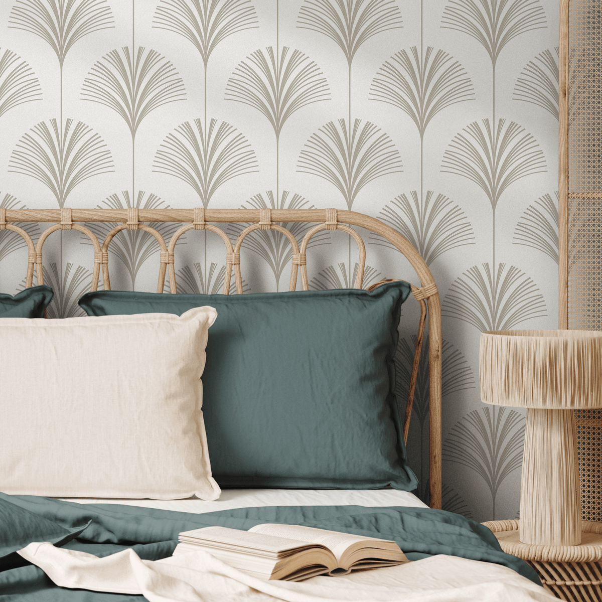 Introduce timeless sophistication to your space with this Art Deco Wallpaper, featuring an elegant fan motif in a classic gray. Perfect for creating a statement wall or enveloping a room in refined style, this design brings a touch of vintage glamour to modern interiors. The repeating geometric pattern offers a sense of harmony and luxury, making it an ideal choice for elevating your home decor.