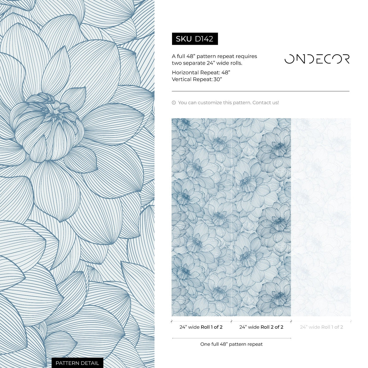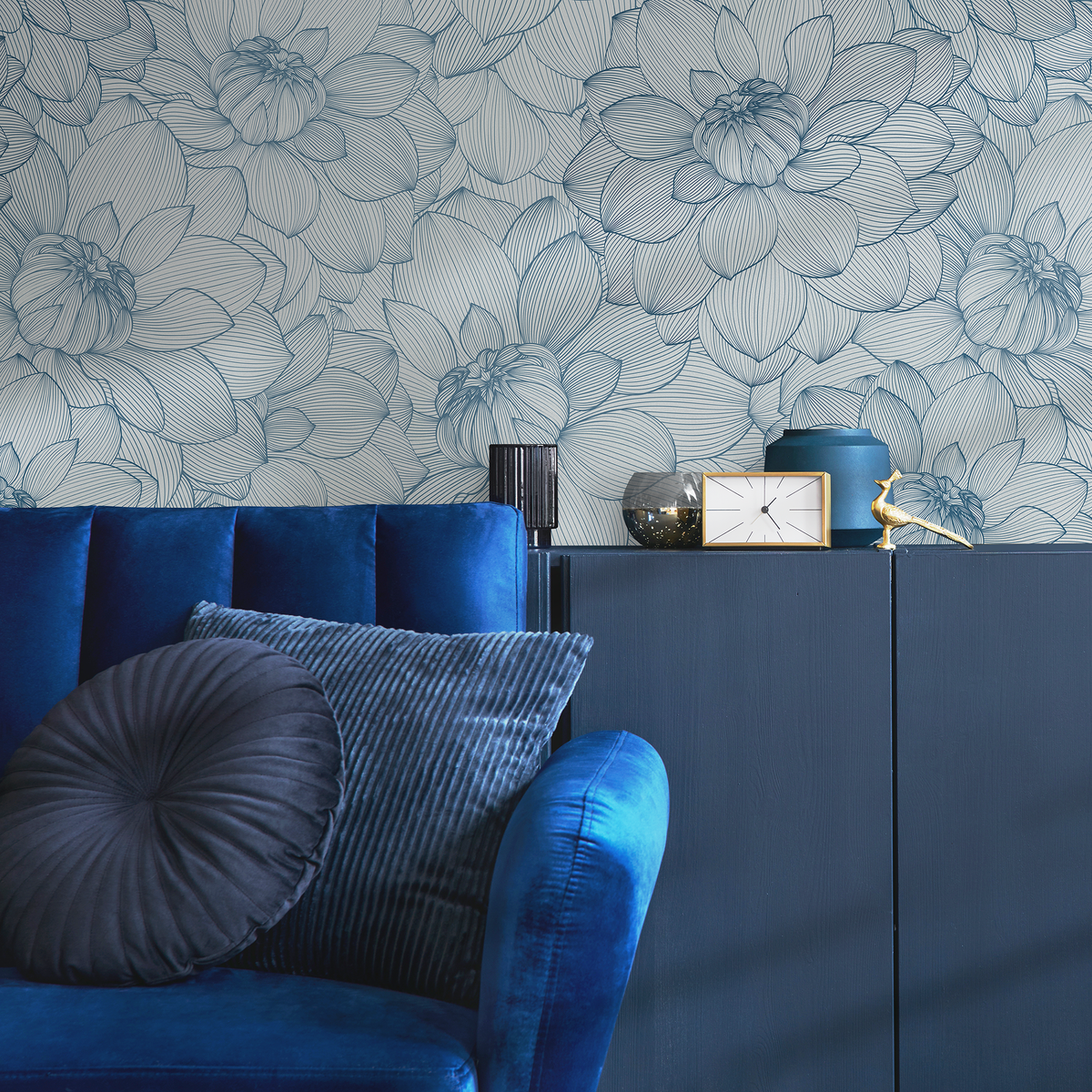 Introduce timeless elegance to your home with this Floral Wallpaper, featuring a delicate peony line drawing. The intricate sketch motif, rendered in sophisticated blue and gray, offers a modern and artistic take on classic floral wall art. This design creates a serene and captivating atmosphere, making it a perfect choice for anyone looking to infuse their space with subtle yet impactful style. Ideal for creating a stunning feature wall or decorating an entire room, this wallpaper transforms your interior design with its graceful and refined aesthetic.