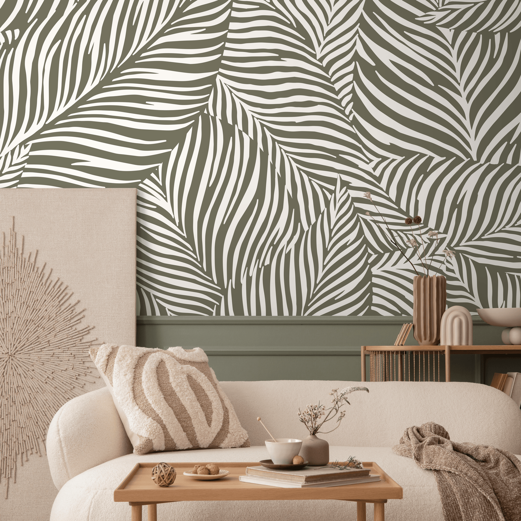 Introduce a touch of nature's elegance with our Botanical Wallpaper, showcasing a bold palm frond motif in a sophisticated Green and White palette. This stunning wall art is designed to create a captivating focal point in any room, effortlessly blending modern style with organic beauty. The abstract interpretation of the palm leaves adds a unique, artistic flair to your home decor, making it an ideal choice for a contemporary interior design refresh.