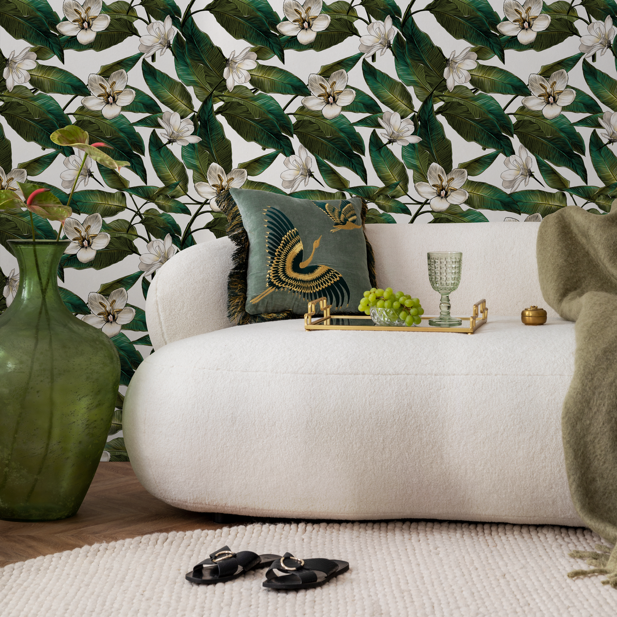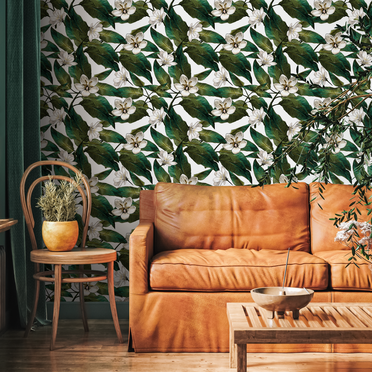 Transform your home with our stunning Botanical Wallpaper, featuring lush tropical leaves and elegant white flowers in a classic green and white palette. This vintage-inspired wall art brings a touch of nature's tranquility indoors, creating a sophisticated and refreshing atmosphere. Perfect for anyone seeking a bold yet elegant home decor update, this removable wallpaper offers an effortless way to express your personal style.