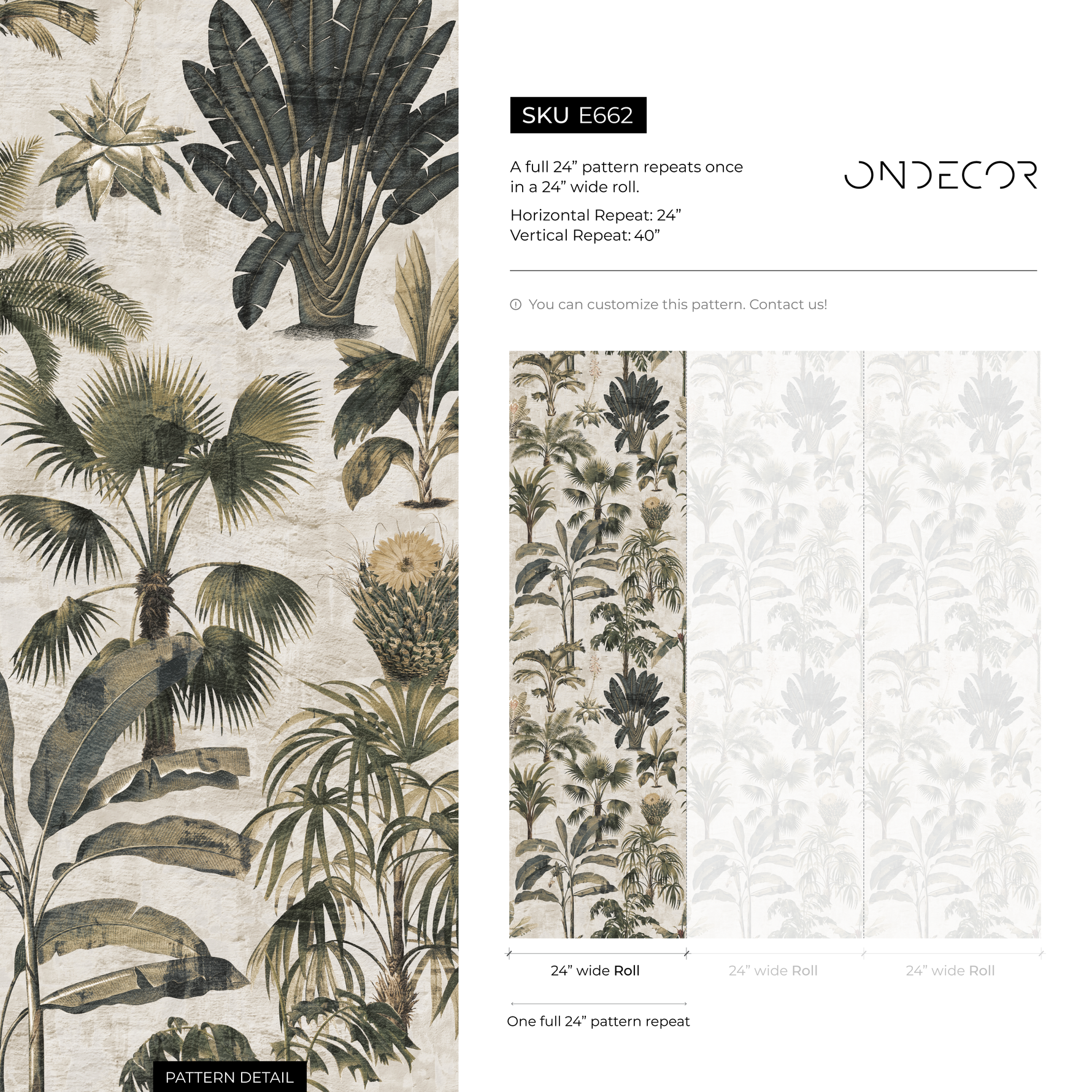 Transform your space with our stunning Botanical Wallpaper, featuring a sophisticated design of vintage palm trees in serene shades of green and beige. This tropical-inspired print adds a touch of nature and timeless elegance to any room, making it the perfect choice for creating a captivating accent wall or enveloping an entire space in its charm. Whether you're updating your living room, bedroom, or office, this design serves as beautiful wall art that elevates your interior design.