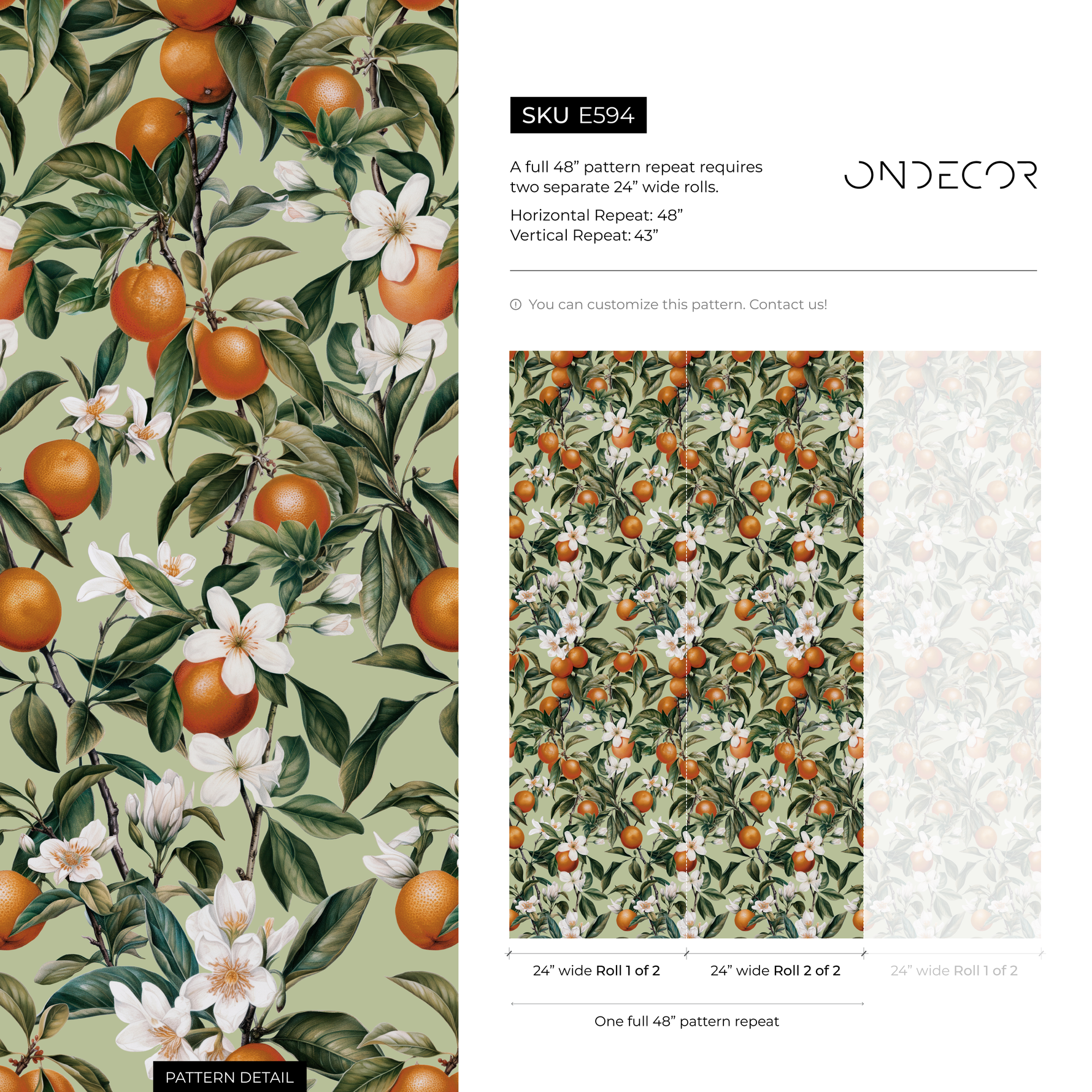 Transform your space with our stunning Botanical Wallpaper, featuring a vintage-inspired pattern of lush orange tree branches. This elegant design showcases vibrant oranges and delicate white blossoms set against a rich green background, bringing the timeless beauty of a Mediterranean orchard into your home. Perfect for creating a sophisticated accent wall, this orange and green wallpaper adds a touch of nature-infused artistry to any interior design project.
