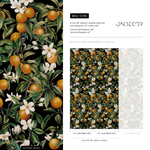 Transform your home decor effortlessly with this high-quality wall art. Ideal as a removable wallpaper, our peel and stick option ensures a simple, mess-free application, making it perfect for renters or anyone seeking an easy style update. This vintage orange tree wallpaper works beautifully as an accent wall in a dining room, living room, or powder room, adding depth and character. The intricate details and moody color palette make this design a versatile piece of interior design that complements both modern and traditional spaces.