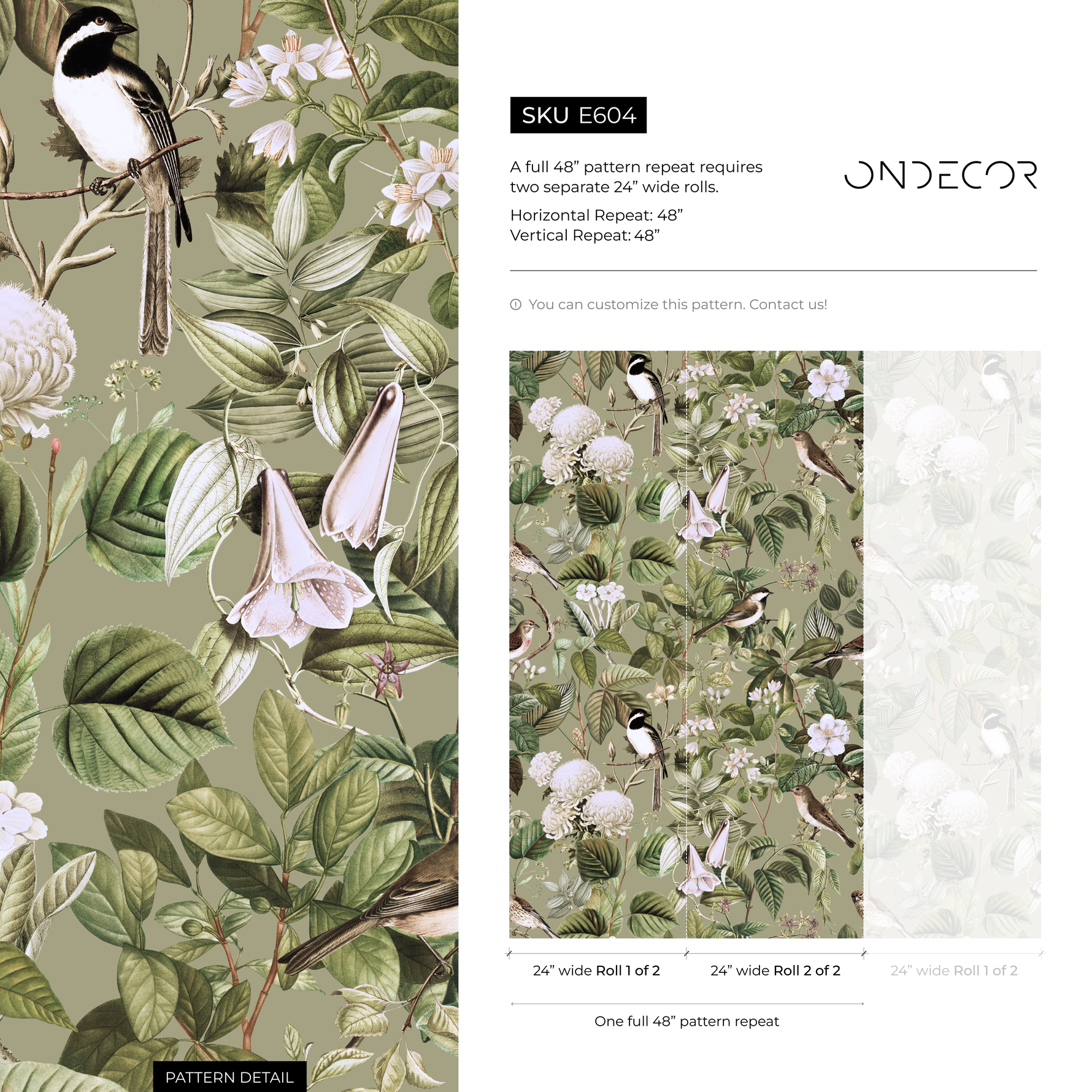Introduce a touch of timeless elegance to your home with our stunning Botanical Wallpaper. This design features beautifully illustrated vintage birds perched among lush foliage and delicate white florals, all set against a sophisticated green and brown background. The intricate details and classic artistry make this wallpaper a captivating choice for any interior design project.