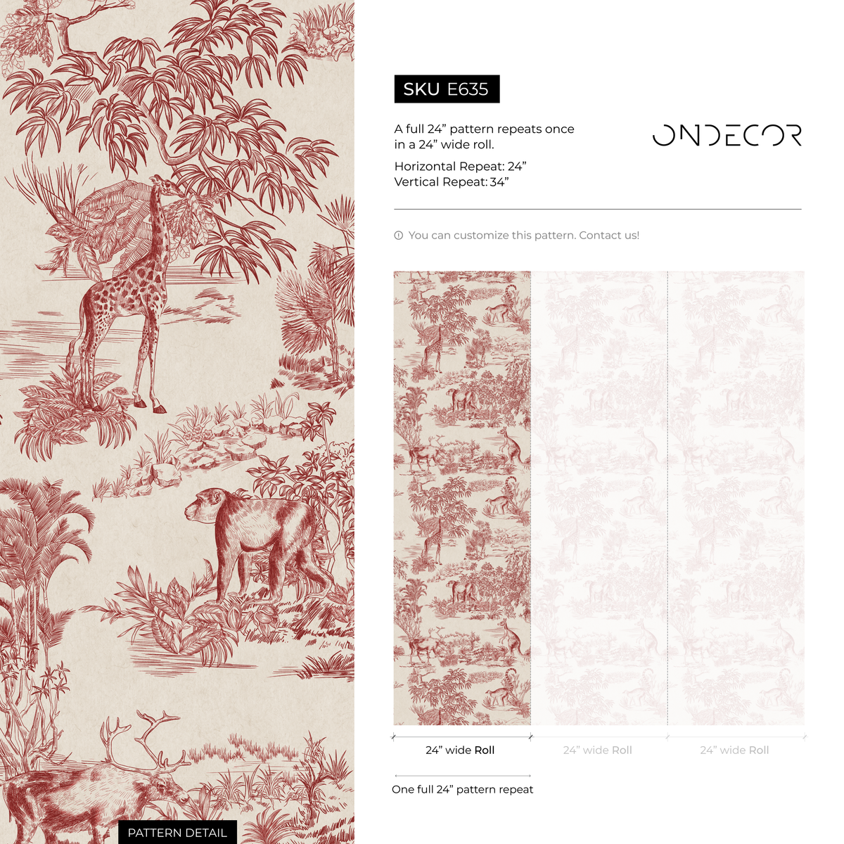 Crafted with meticulous attention to detail, this wallpaper offers a durable and high-quality solution for enhancing your home. The safari animal motif provides a unique conversation piece, blending traditional Toile style with adventurous elements. Whether you're undertaking a full renovation or simply looking for an easy style upgrade, this Red and Beige wallpaper provides an effortless way to express your personal style and create a truly memorable space.
