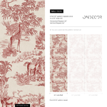 Introduce a touch of classic elegance with an exotic twist to your home with our Toile Wallpaper, featuring a sophisticated safari animal scene. This vintage-inspired design showcases intricately drawn giraffes, lemurs, and monkeys set against a lush jungle landscape, all rendered in a timeless Red and Beige color scheme. Perfect for creating a stunning accent wall or decorating an entire room, this wallpaper adds a layer of worldly charm and artistic flair to any interior.
