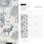 Introduce a touch of timeless elegance to your space with our Toile Wallpaper, featuring a classic deer and forest scene in a sophisticated blue. This exquisite design captures the charm of a countryside etching, bringing a serene and pastoral ambiance to any room. Perfect for creating a stunning accent wall or enveloping an entire space, this scenic wall art adds depth and character to your interior design.