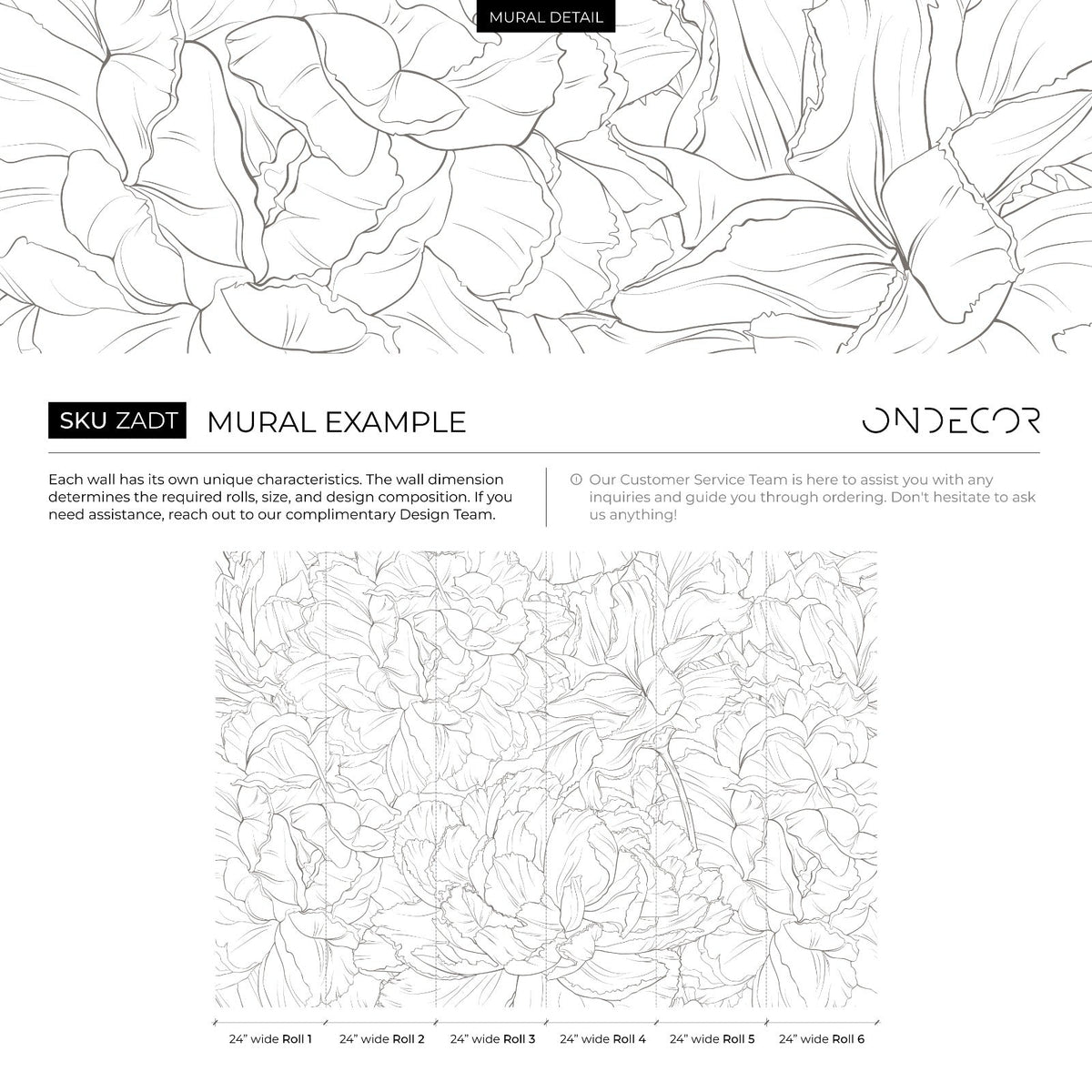Floral Wallpaper Featuring Minimalist Peony Outlines in Black and White - ZADT