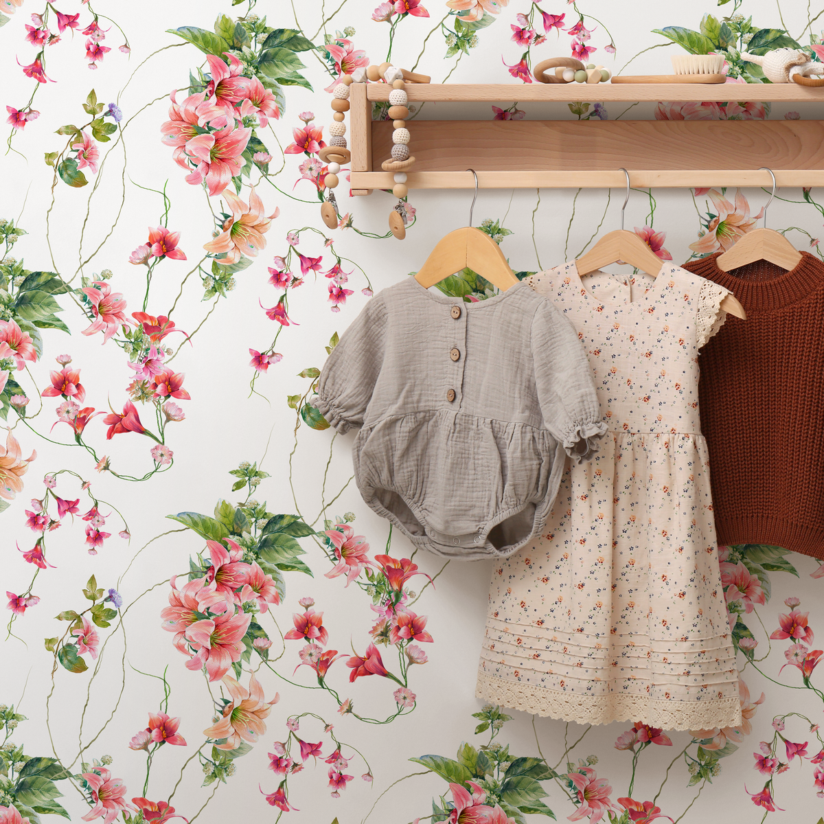 Introduce timeless elegance to your home with our Floral Wallpaper, featuring delicate trailing sweet pea vines. This botanical wall art, rendered in a beautiful palette of pink, red, and green, creates a serene and inviting atmosphere. Perfect for adding a touch of nature-inspired charm, this design transforms any room into a sophisticated sanctuary. The detailed floral pattern provides a classic yet fresh look, making it an ideal choice for your next interior design project.