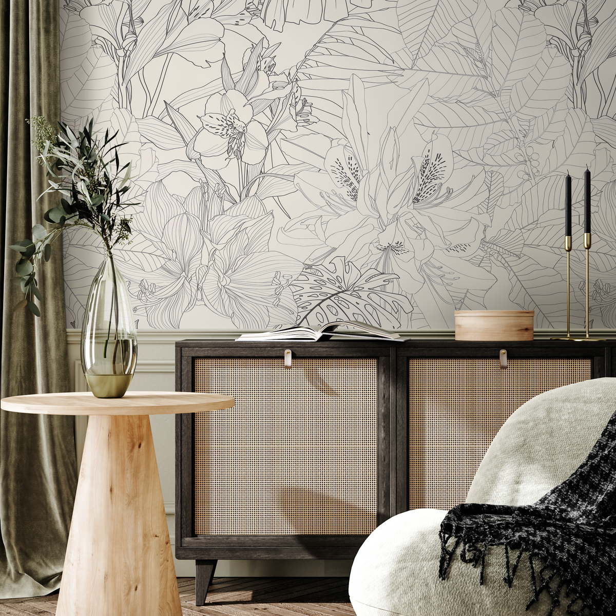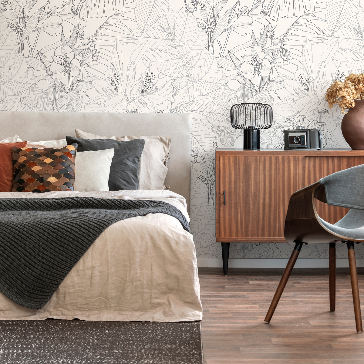 Introduce a touch of sophisticated nature to your home with this stunning Floral Wallpaper. Featuring a delicate tropical line art motif, this design showcases elegant gray linework on a soft cream background, creating a serene and modern aesthetic. As a versatile peel and stick wallpaper, it serves as the perfect home decor element to refresh any space, from a subtle accent wall to a full room transformation. The neutral color palette ensures it complements a wide range of interior design styles, adding a layer of artistic elegance to your walls.