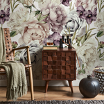 Transform your home with our stunning Floral Wallpaper, featuring a romantic design of vintage peonies and roses. This elegant wall art, rendered in soft watercolor shades of mauve, purple, and green, creates a sophisticated and timeless atmosphere. Perfect for anyone looking to add a touch of classic beauty to their interior design, this wallpaper serves as a breathtaking focal point.