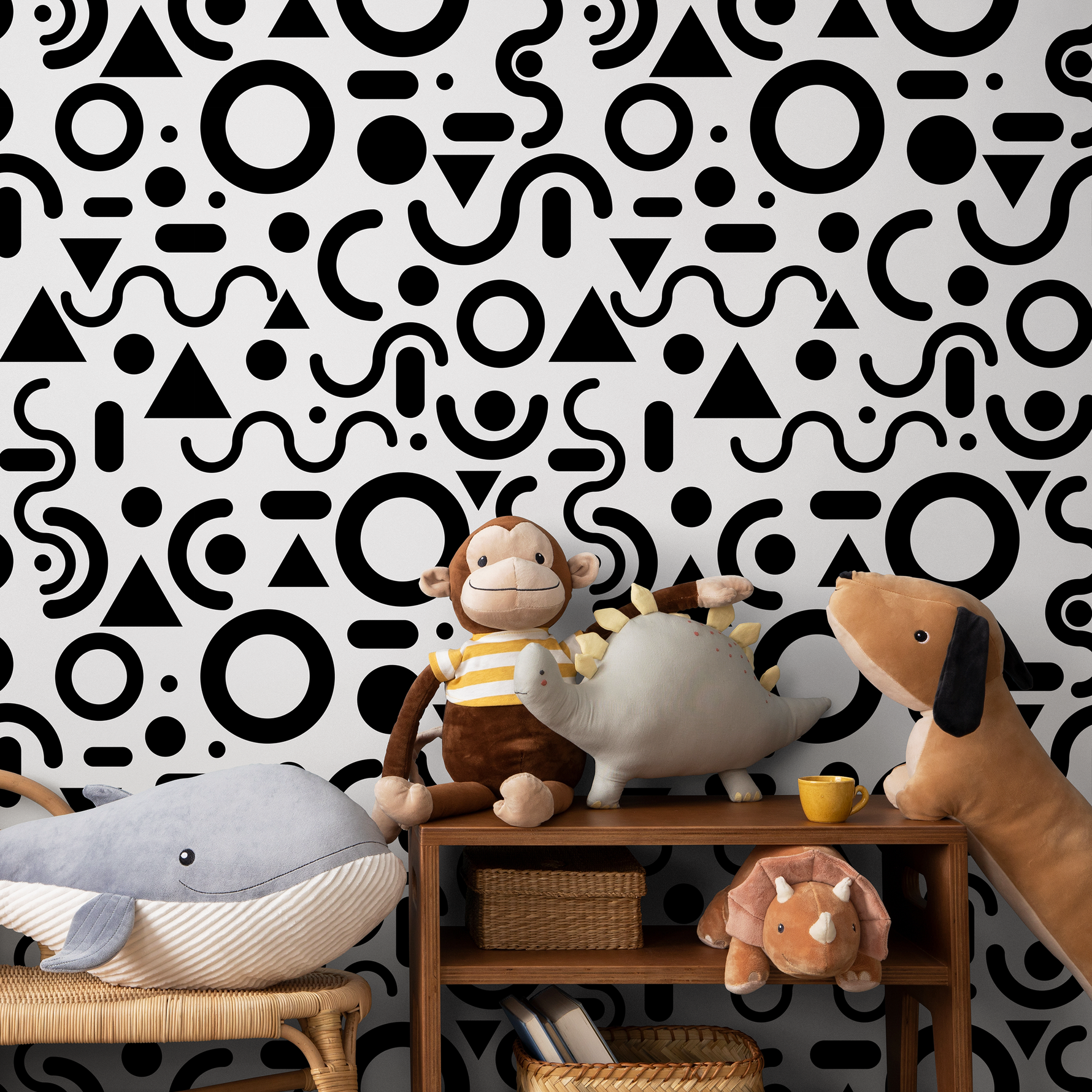 Crafted in the USA using green energy, this wallpaper reflects a commitment to quality and sustainability. We guarantee superior color consistency and sharp, high-quality printing, ensuring every panel aligns perfectly. Enjoy the benefits of a thicker, more durable wallpaper that simplifies installation and stands the test of time. Redefine your home with this exceptional black and white wall decor that combines modern design with practical, eco-conscious innovation.• Perfect for a kids' room, modern nursery, or a playful living room accent wall.