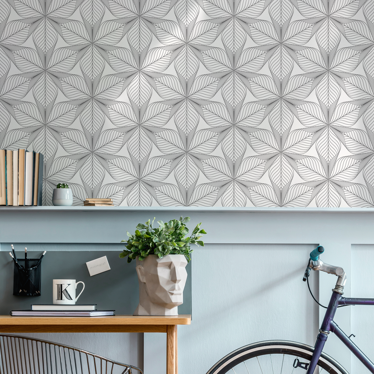 Introduce a touch of modern sophistication with our Geometric Wallpaper, featuring an intricate line art floral motif. The elegant design, rendered in classic Black and Gray, creates a subtle yet captivating statement piece that enhances any interior. This wallpaper is perfect for creating a striking accent wall or transforming an entire room with its clean lines and contemporary aesthetic, making it a versatile choice for modern home decor.