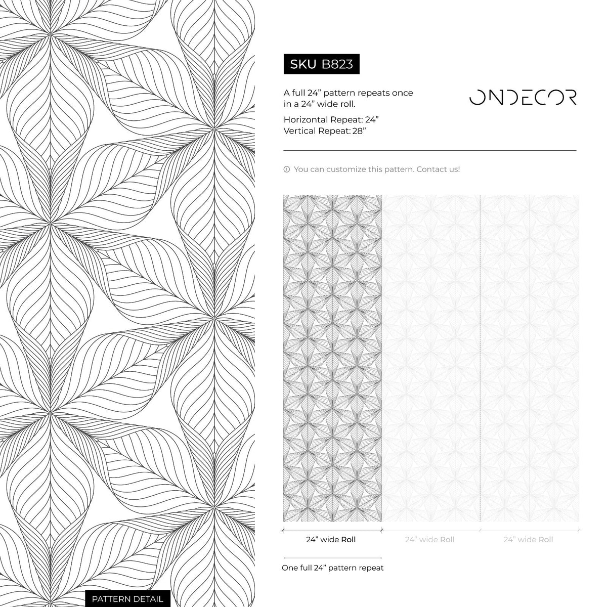 Geometric Wallpaper with an Intricate Line Art Floral Motif in Black and Gray - B823