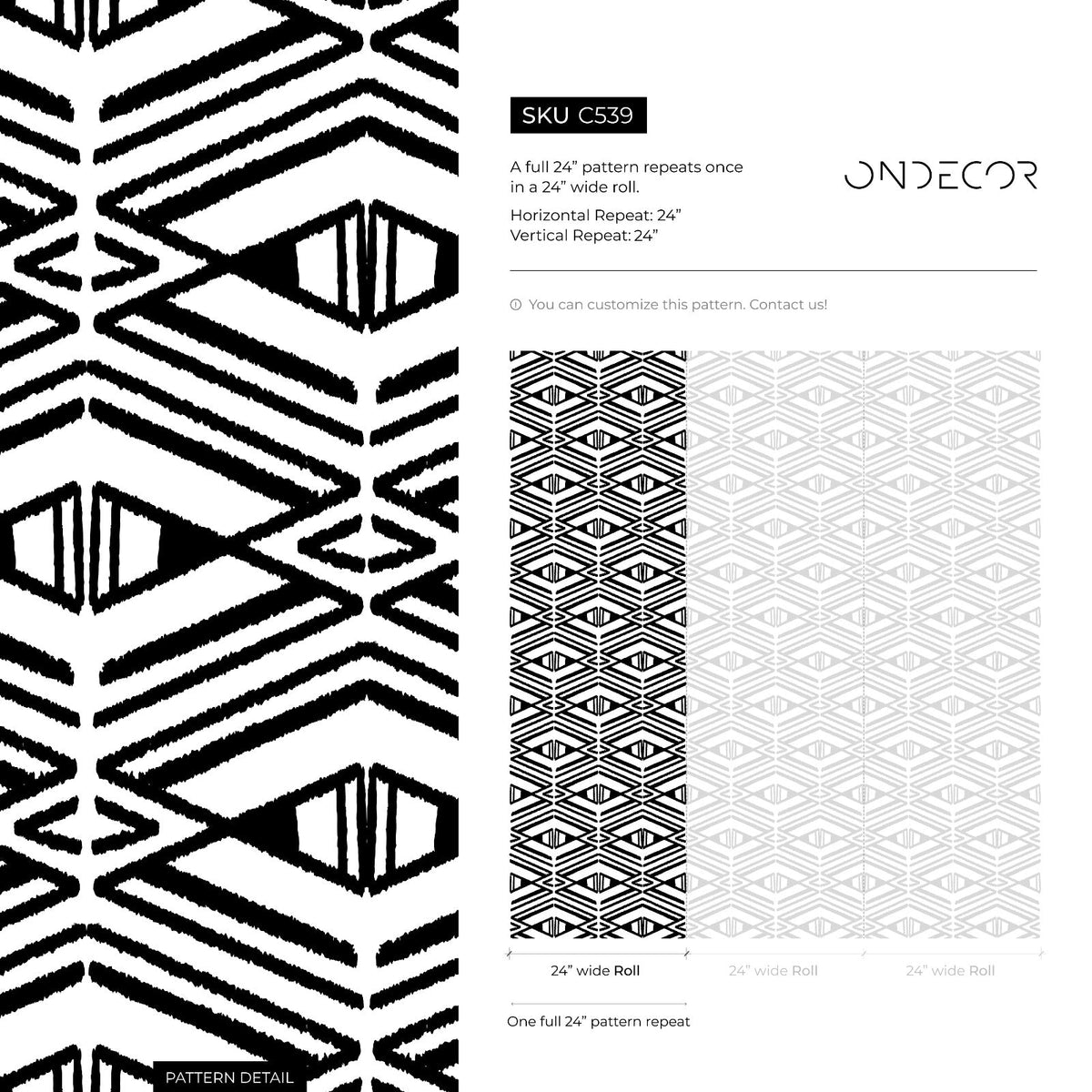 Geometric Wallpaper with a Stamped Diamond Motif in Black and White - C539