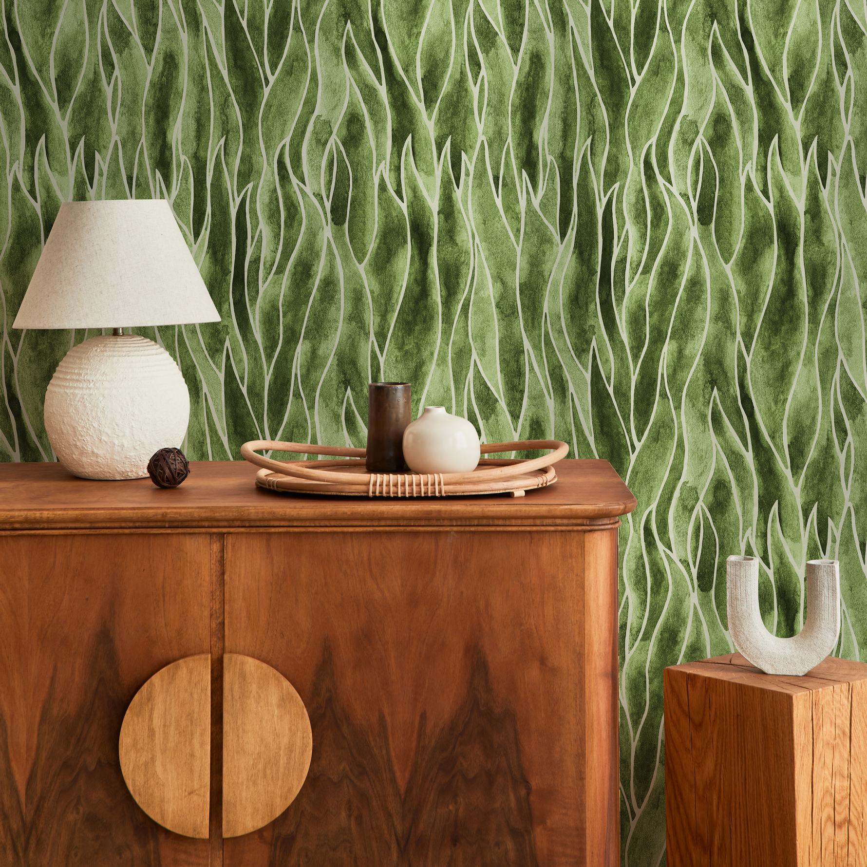 Immerse your space in the serene, flowing energy of our Abstract Wallpaper. This stunning design features a flowing seaweed motif in rich shades of olive green and white, creating a dynamic yet calming atmosphere. Perfect for anyone looking to introduce sophisticated, nature-inspired wall art into their home decor, this wallpaper instantly elevates any room from ordinary to extraordinary.