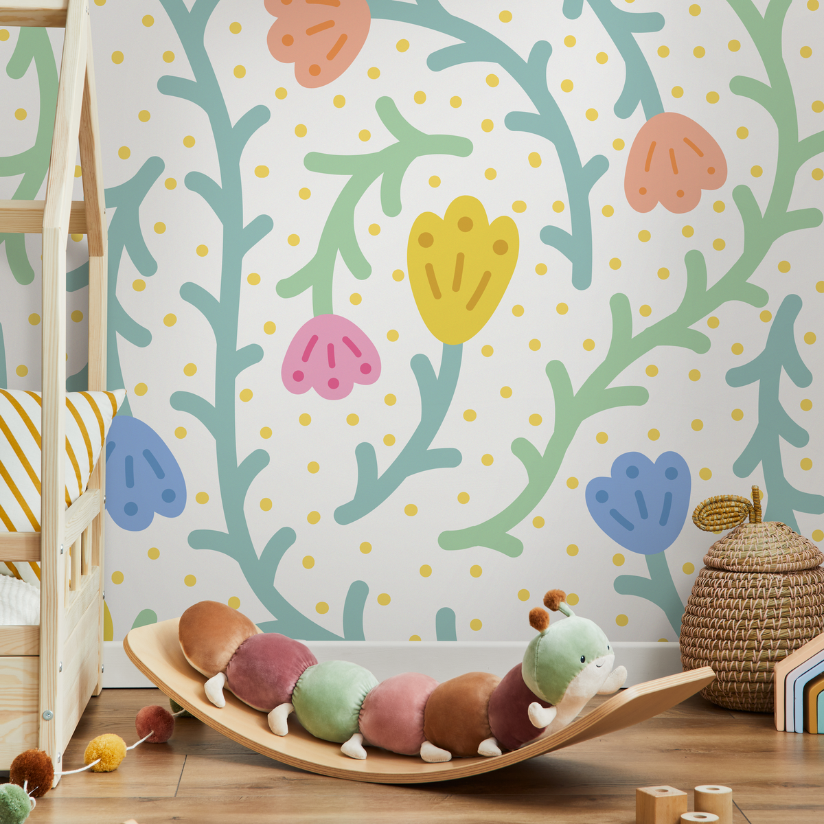 Crafted for modern homes and busy families, this removable wallpaper offers a simple solution for interior design updates. The peel and stick format ensures a smooth, bubble-free application, making it an easy DIY project. This high-quality wall decor is not only beautiful but also practical. As a durable and easily cleanable surface, it’s ideal for high-traffic kids' spaces. Transform your home decor effortlessly with this enchanting floral wall art.