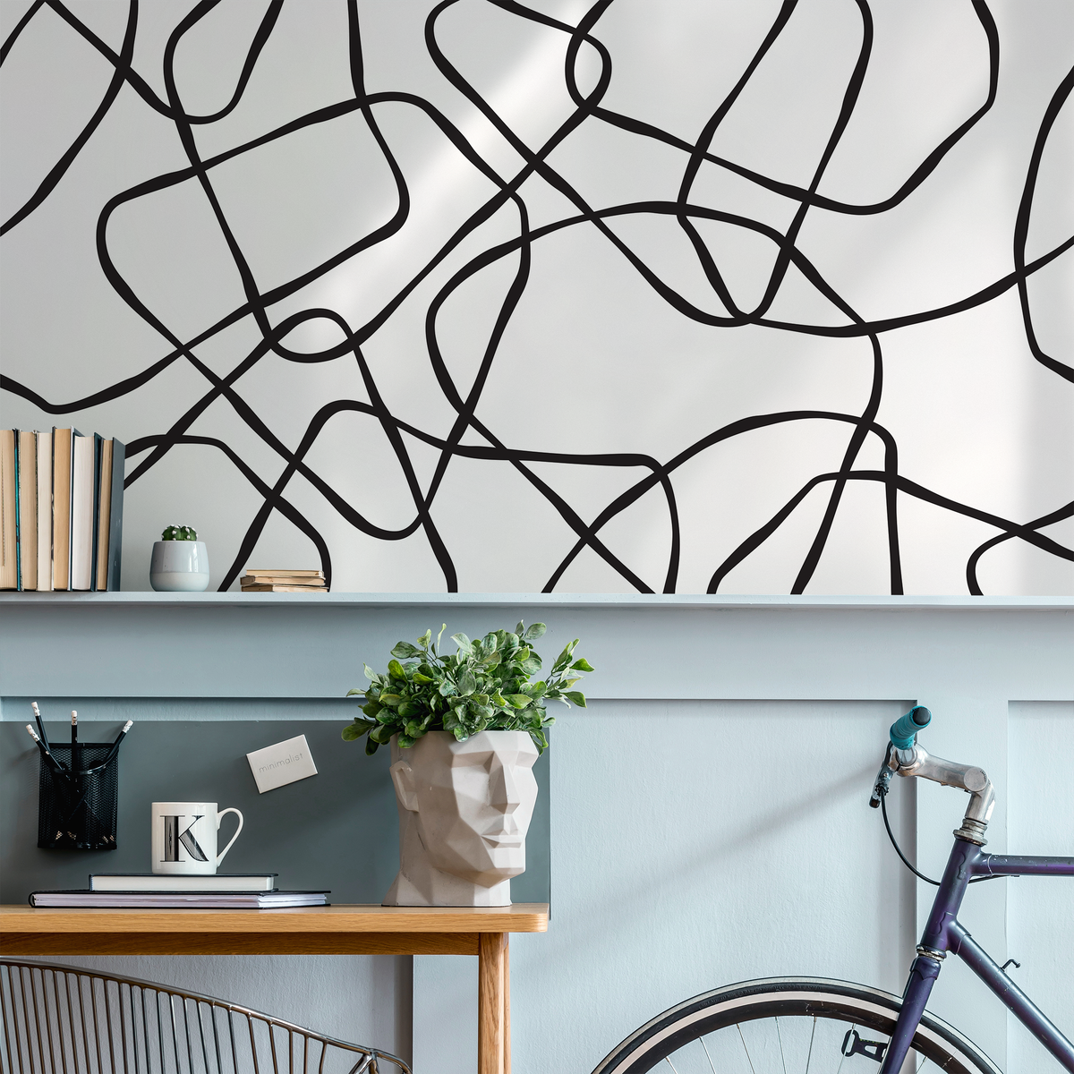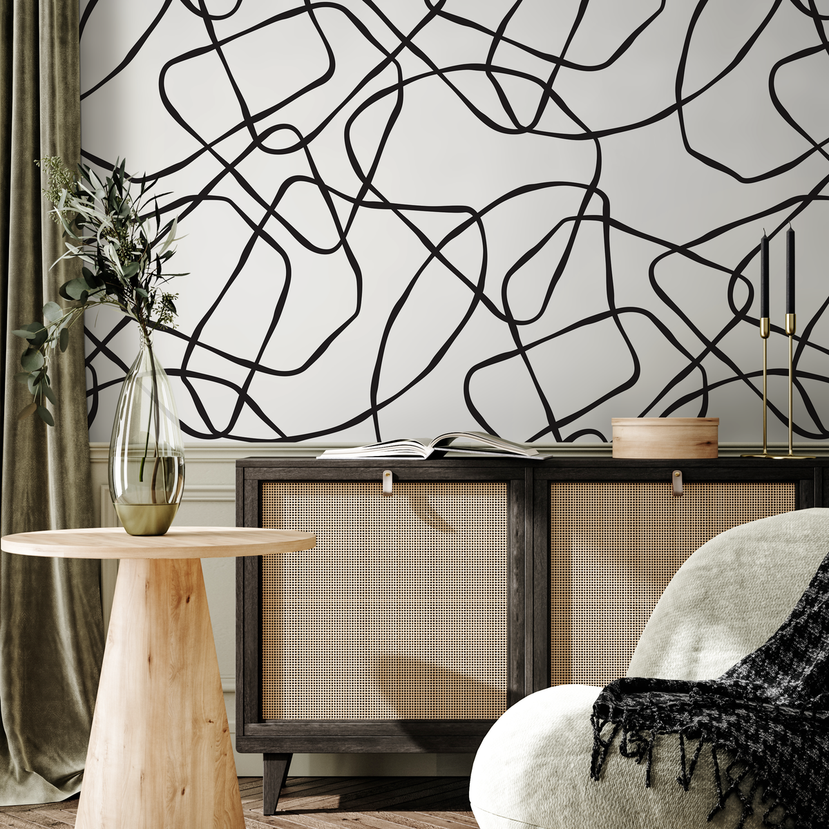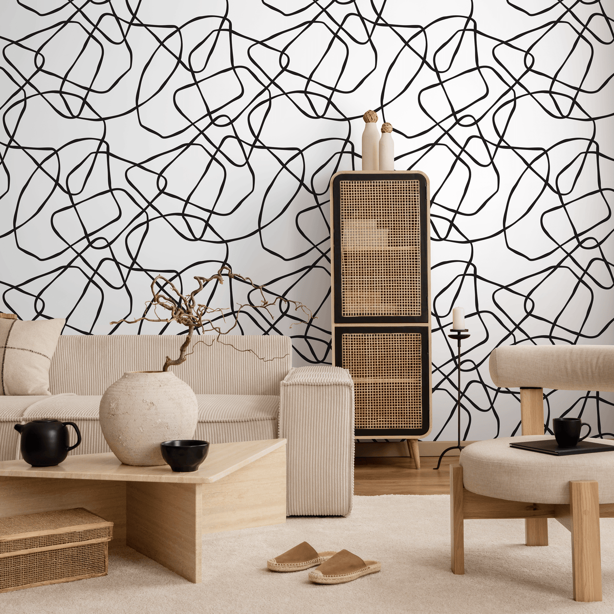 Introduce a touch of modern sophistication with our Abstract Wallpaper, featuring a captivating continuous line art motif in a classic Black and White palette. This minimalist wallpaper is the perfect solution for creating a striking focal point in any room, effortlessly blending with Scandinavian and contemporary home decor. The fluid, hand-drawn-like scribbles provide dynamic movement and artistic flair, transforming your wall into a piece of modern art.