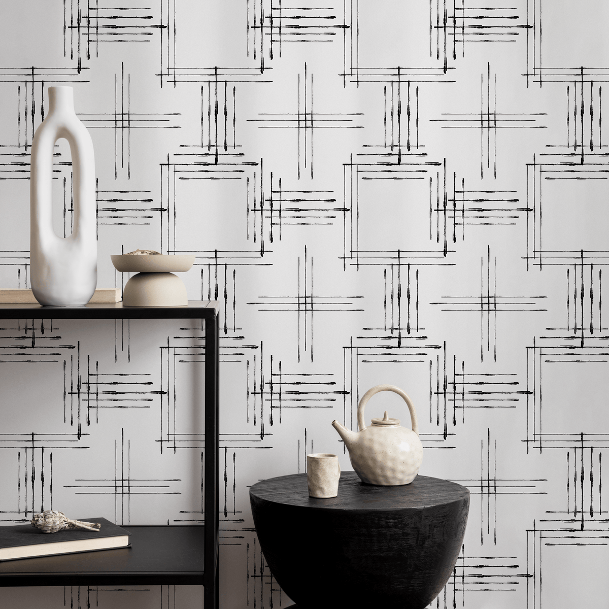 Introduce a touch of minimalist elegance to your home with our Geometric Wallpaper, featuring a striking sketched grid motif. This Scandinavian-inspired design, presented in a classic Black and White color scheme, offers a sophisticated yet simple way to elevate your interior. Perfect for creating a modern focal point, this removable wallpaper blends artistic flair with clean, contemporary lines, making it a versatile choice for any home decor project.