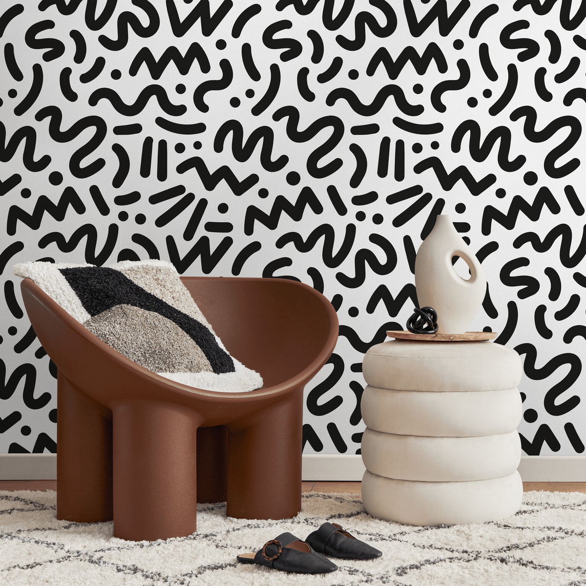 Introduce a touch of modern energy to your home with our Abstract Wallpaper, featuring a bold doodle pattern in striking black and white. This minimalist design is perfect for creating a dynamic accent wall or transforming an entire room with its unique, hand-drawn aesthetic. The high-contrast Black and White color scheme makes this wallpaper a versatile choice for any contemporary interior design project, adding visual interest without overwhelming the space. Crafted for effortless home makeovers, this removable wallpaper is available in a premium peel and stick format that simplifies installation and allows for easy removal. It's the perfect wall art solution for renters or anyone looking to update their decor without a long-term commitment. This peel and stick wallpaper for home decor is ideal for a living room, bedroom, or creative home office, offering a sophisticated yet playful backdrop. Each roll is designed for a seamless look, turning any plain wall into a stunning feature. Our commitment to quality ensures a superior product, made in the USA using eco-friendly, non-toxic inks and thicker, scratch-resistant materials for lasting durability. We guarantee color consistency for a flawless finish and run our production on 100% green energy. Enjoy an easy, stylish, and sustainable way to express your personality through interior design.