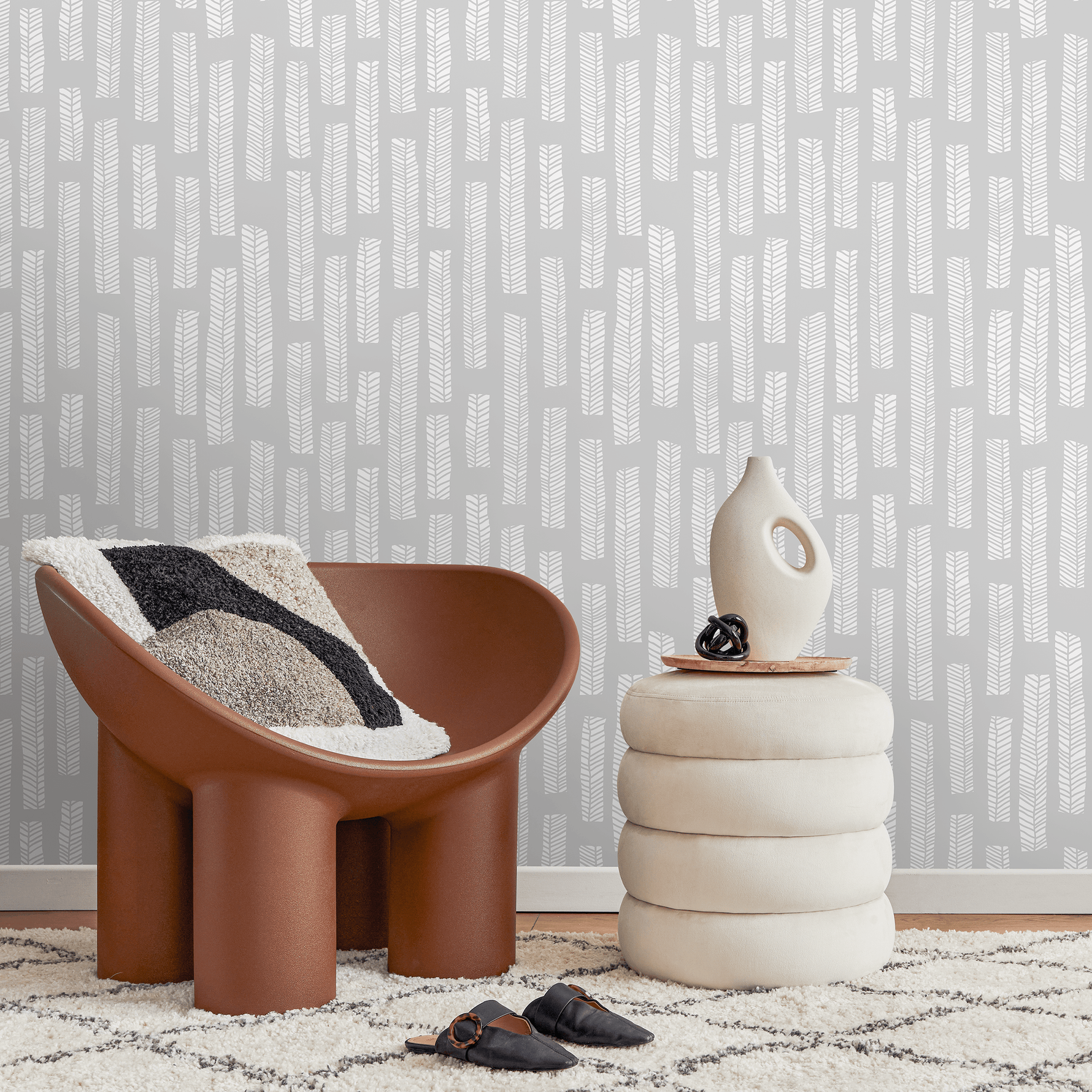 Introduce a touch of minimalist elegance to your home with our Scandinavian Wallpaper, featuring a sophisticated herringbone column motif. The calming Gray and White color palette creates a serene and modern atmosphere, making this wall art a perfect choice for contemporary interior design. This versatile peel and stick wallpaper is designed to effortlessly enhance any room, offering a simple yet impactful way to update your home decor. Whether you're creating a feature wall or decorating an entire space, the subtle texture and clean lines of this design bring a sense of Nordic-inspired tranquility.