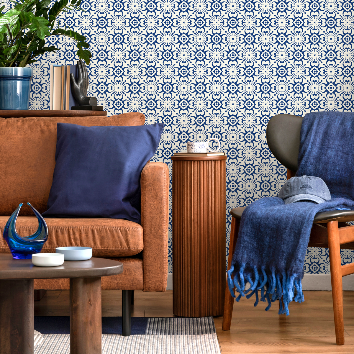 Introduce timeless elegance to your home with our exquisite Tile Wallpaper. This design features a classic Azulejo pattern in sophisticated shades of Blue and Cream, creating a stunning visual impact. Perfect for those who appreciate Mediterranean-inspired home decor, this geometric wallpaper brings intricate artistry to any wall, transforming it into a captivating focal point.