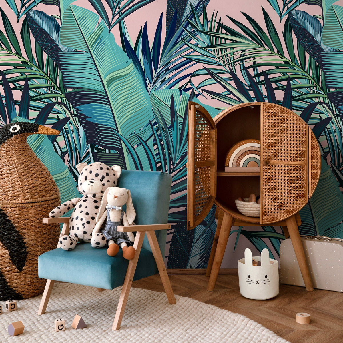 Introduce a lush, vibrant escape into your home with our Tropical Wallpaper, featuring layered palm and banana leaves in stunning shades of pink, teal, and green. This bold botanical wall art is perfect for creating a dramatic statement, instantly transforming any room with its dynamic and immersive design. The detailed leaves and rich color palette bring the beauty of a dense jungle right to your walls, making it an ideal choice for anyone looking to infuse their space with energy and sophisticated style. This removable wallpaper is a simple yet powerful tool for your next interior design project.