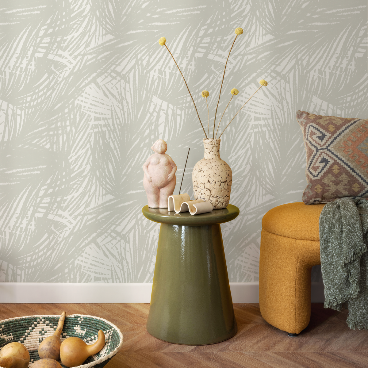 Introduce a serene, natural element to your home with our Tropical Wallpaper in subtle Light Gray and Cream. This elegant wall art features delicately sketched palm fronds, creating a tranquil and sophisticated atmosphere perfect for modern interior design. The neutral Boho style offers a calming backdrop that enhances your space without overwhelming it, making it a timeless choice for any home.