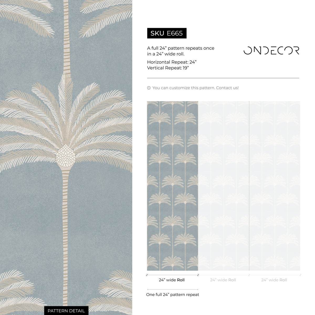 Tropical Wallpaper with Stylized Palm Trees in Blue and Beige - E665